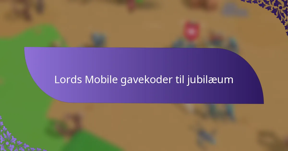 Aktive gavekoder til Lords Mobile for jubilæet giver spillerne værdifulde belønninger, der forbedrer gameplay. Disse koder kan tilbyde ressourcer, genstande og bonusser, som er særligt fordelagtige under jubilæumsbegivenheden.